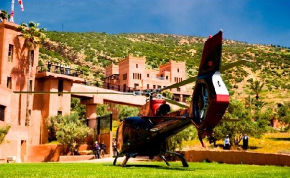 Les hôtels au Maroc avec héliports comprennent la Kasbah Tamadot dans les montagnes de l’Atlas,le Widiane/Spa au Lac Bin Louidane, Dar Ahlama l’oasis de Skoura le XalucaDadesau-dessus de la vallée duDades et le XalucaMaadid aux portes du désert.